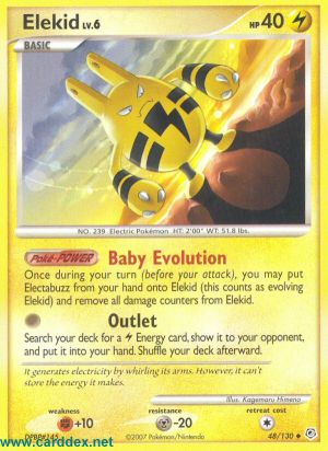 Einmal während deines Zuges (vor deinem Angriff) kannst du Elektek von deiner Hand auf Elekid legen (das zählt als Entwickeln von Elekid). Entferne alle Schadensmarken von Elekid.