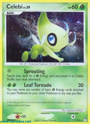 Kosten: Durchsuche dein Deck nach einer -Energiekarte und lege sie an Celebi an. Mische dein Deck danach.  Schaden: