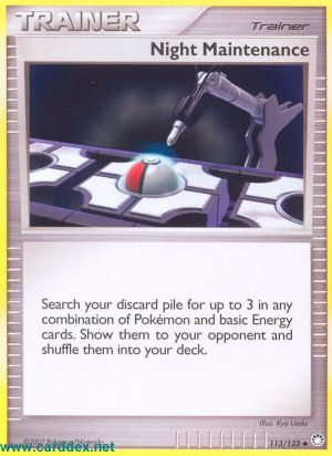Durchsuche deinen Ablagestapel nach bis zu 3 Karten in beliebiger Kombination aus Pokémon- und Basis-Energiekarten. Zeige sie deinem Gegner und mische sie in dein Deck.