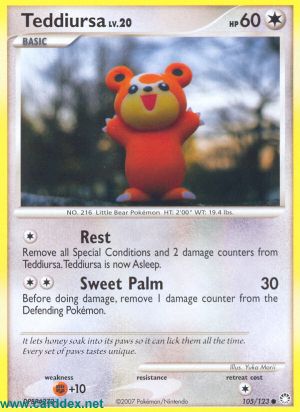 Kosten: Entferne alle Speziellen Zustände und 2 Schadensmarken von Teddiursa. Teddiursa schläft jetzt.  Schaden: