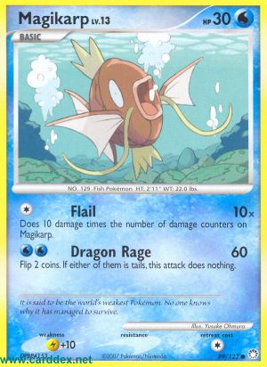 Kosten: Dieser Angriff fügt 10 Schadenspunkte für jede Schadensmarke auf Karpador zu.  Schaden: