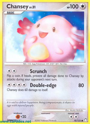 Kosten: Wirf 1 Münze. Bei „Kopf“ verhindere alle Schadenspunkte, die Chaneira während des nächsten Zuges deines Gegners durch Angriffe zugefügt werden.  Schaden: