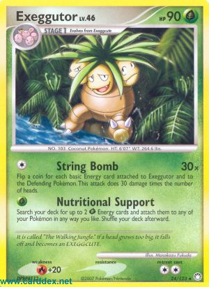 Wirf 1 Münze für jede an Kokowei und das Verteidigende Pokémon angelegte Basis-Energiekarte. Dieser Angriff fügt 30 Schadenspunkte mal der Anzahl „Kopf“ zu.