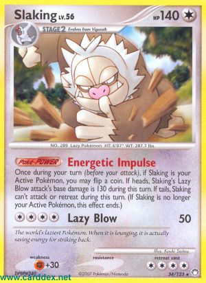 Einmal während deines Zuges (vor deinem Angriff) kannst du, wenn Letarking dein Aktives Pokémon ist, 1 Münze werfen. Bei „Kopf“ beträgt der Grundschaden von Letarkings Angriff Lahmer Schlag in diesem Zug 130 Schadenspunkte. Bei „Zahl“ kann Letarking in diesem Zug weder angreifen noch sich zurückziehen. (Wenn Letarking nicht mehr dein Aktives Pokémon ist, endet dieser Effekt.)