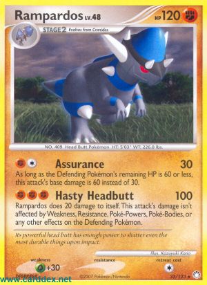 Kosten: Rameidon fügt sich selbst 20 Schadenspunkte zu. Schwäche, Resistenz, Poké-Power, Poké-Body und alle anderen Effekte auf dem Verteidigenden Pokémon haben keine Auswirkungen auf die Schadenspunkte dieses Angriffs.  Schaden: