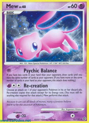 Wähle 1 Angriff einer Pokémon-Karte im Ablagestapel deines Gegners. Nachstellung kopiert diesen Angriff, mit Ausnahme der Energiekosten. (Du musst immer noch alles tun, was verlangt wird, um diesen Angriff durchzuführen.) Mew führt diesen Angriff aus.