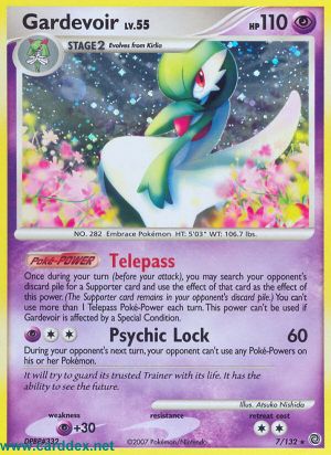 Einmal während deines Zuges (vor deinem Angriff) kannst du den Ablagestapel deines Gegners nach 1 Unterstützerkarte durchsuchen und ihren Effekt als Effekt dieser Poké-Power nutzen. (Die Unterstützerkarte bleibt im Ablagestapel deines Gegners.) Du kannst nicht mehr als 1 Telepass Poké-Power pro Zug einsetzen. Diese Poké-Power kann nicht benutzt werden, wenn Guardevoir von einem Speziellen Zustand betroffen ist.