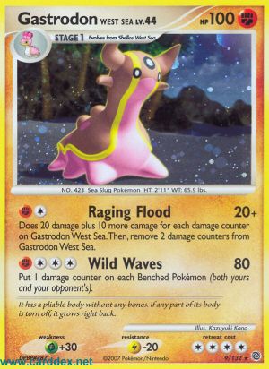 Kosten: Dieser Angriff fügt 20 Schadenspunkte plus 10 weitere Schadenspunkte für jede Schadensmarke auf Gastrodon Westliches Meer zu. Danach entferne 2 Schadensmarken von Gastrodon Westliches Meer.  Schaden: