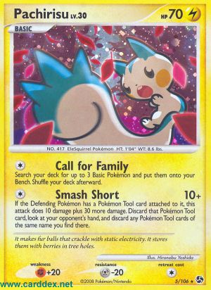 Wenn am Verteidigenden Pokémon 1 Pokémon-Ausrüstung angelegt ist, fügt dieser Angriff 10 Schadenspunkte plus 30 weitere Schadenspunkte zu. Entferne diese Pokémon-Ausrüstung vom Verteidigenden Pokémon und lege sie auf den Ablagestapel, danach schau dir die Handkarten deines Gegners an und lege jede Pokémon-Ausrüstungs-Karte desselben Namens auf den Ablagestapel.