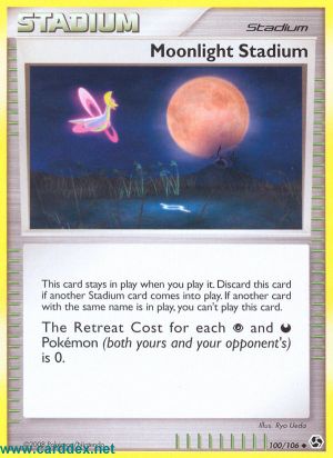 Diese Karte bleibt im Spiel, wenn du sie spielst. Lege diese Karte ab, sobald eine weitere Stadion-Karte ins Spiel kommt. Wenn sich bereits eine Karte mit diesem Namen im Spiel befindet, kannst du diese Karte nicht spielen.