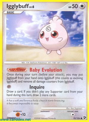Einmal während deines Zuges (vor deinem Angriff) kannst du Pummeluff von deiner Hand auf Fluffeluff legen (das zählt als Entwickeln von Fluffeluff). Entferne alle Schadensmarken von Fluffeluff.