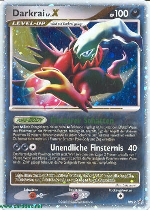 Each basic Energy card attached to your Pokémon now has the effect. If the Pokémon Darkness Energy is attached to attachs, the attack does 10 more damage to the Active Pokémon (before applying Weakness and Resistance). You can't use more than 1 Dark Shadow Poké-Body each turn.