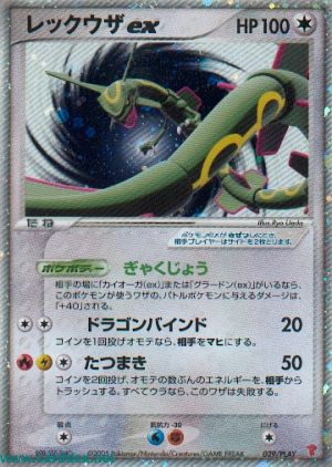 As long as your opponent has Kyogre, Kyogre ex, Groudon or Groudon ex in play, Rayquaza ex's attacks do 40 more damage to the Defending Pokemon (before applying Weakness and resistance).