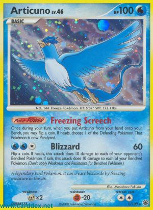 Einmal während deines Zuges kannst du, wenn du Arktos von deiner Hand auf deine Bank legst, 1 Münze werfen. Bei „Kopf“ wähle 1 Verteidigendes Pokémon. Das gewählte Pokémon ist jetzt gelähmt.