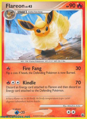 Entferne 1 Energiekarte, die an Flamara angelegt ist, und lege sie auf deinen Ablagestapel. Lege danach 1 Energiekarte, die am Verteidigenden Pokémon angelegt ist, auf den Ablagestapel deines Gegners.