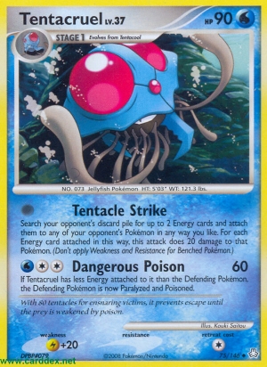 Wenn an das Verteidigende Pokémon mehr Energie angelegt ist als an Tentoxa, ist das Verteidigende Pokémon jetzt gelähmt und vergiftet.