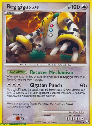 Wenn du 1 Energiekarte von deiner Hand an Regigigas anlegst, entferne alle Speziellen Zustände von Regigigas.
