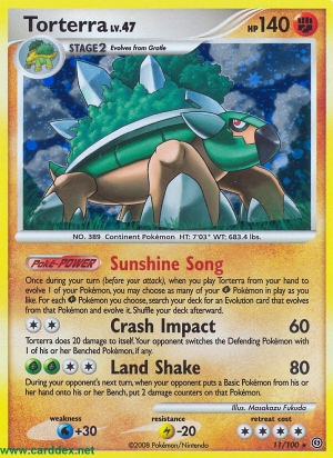 Einmal während deines Zuges (vor deinem Angriff) kannst du, wenn du Chelterrar von deiner Hand spielst, um 1 deiner Pokémon zu entwickeln, eine beliebige Anzahl deiner -Pokémon im Spiel wählen. Für jedes -Pokémon, das du auf diese Weise gewählt hast, kannst du dein Deck nach einer Evolutionskarte, die sich aus dem gewählten Pokémon entwickelt, durchsuchen und es damit entwickeln. Mische dein Deck danach.