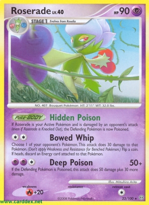 Wenn Roserade dein Aktives Pokémon ist und durch einen gegnerischen Angriff Schaden erhält (auch wenn Roserade dadurch kampfunfähig wird), ist das Angreifende Pokémon jetzt vergiftet.