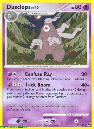 Wenn du 1 Stadion-Karte im Spiel hast, fügt dieser Angriff 40 Schadenspunkte plus 20 weitere Schadenspunkte zu. Wenn dein Gegner 1 Stadion-Karte im Spiel hat, entferne 2 Schadensmarken von Zwirrklop.