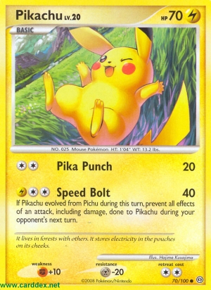 Wenn Pikachu sich in diesem Zug aus Pichu entwickelt hat, verhindere während des nächsten Zuges deines Gegners alle Effekte eines Angriffs, einschließlich Schaden, die Pikachu zugefügt würden.