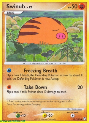 Kosten: Wirf 1 Münze. Bei „Kopf“ ist das Verteidigende Pokémon jetzt gelähmt. Bei „Zahl“ schläft das Verteidigende Pokémon jetzt.  Schaden: