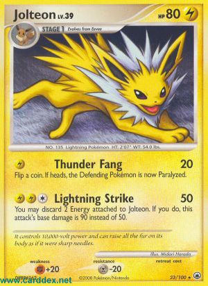 Du kannst 2 Energien, die an Blitza angelegt sind, auf deinen Ablagestapel legen. Wenn du das machst, beträgt der Grundschaden dieses Angriffs 90 Schadenspunkte.