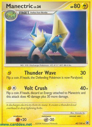 Kosten: Wirf 1 Münze. Bei 'Kopf' lege 1 Energie, die an Voltenso angelegt ist, auf deinen Ablagestapel und dieser Angriff fügt 40 Schadenpunkte plus 30 weitere Schadenspunkte zu.  Schaden: