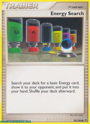 Durchsuche dein Deck nach 1 Basis-Energiekarte, zeige sie deinem Gegner und nimm sie auf die Hand. Mische dein Deck danach.