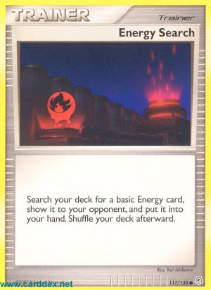 Durchsuche dein Deck nach einer Basis-Energiekarte, zeige sie deinem Gegner und nimm sie auf deine Hand. Mische dein Deck danach.