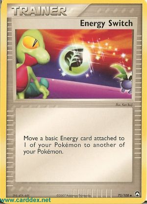 Move a basic Energy card attached to 1 of your Pokemon to another of your Pokemon.