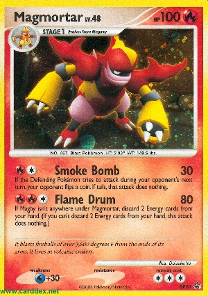 Wenn Magby sich an keiner Stelle unter Magbrant befindet, lege 2 Karten von deiner Hand auf deinen Ablagestapel. (Wenn du keine 2 Karten von deiner Hand auf den Ablagestapel legen kannst, hat dieser Angriff keine Auswirkungen.)