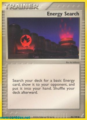 Search your deck for a basic Energy card, show it to your opponent, and put it into your hand. Shuffle your deck afterward.