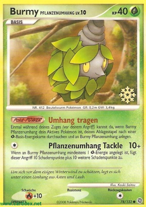 Wenn an Burmy Pflanzenumhang mindestens 1 -Energie angelegt ist, fügt dieser Angriff 10 Schadenspunkte plus 10 weitere Schadenspunkte zu.