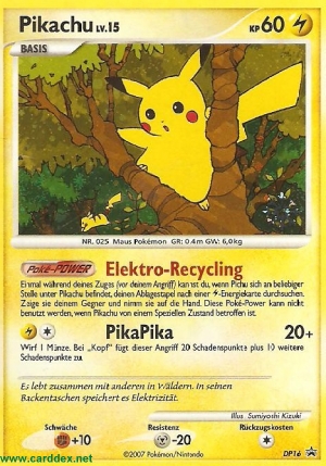 Once during your turn (before your attack), if Pichu is anywhere under Pikachu, you may search your discard pile for a Energy card, show it to your opponent, and put it into your hand. This power can't be used if Pikachu is affected by a Special Condition.
