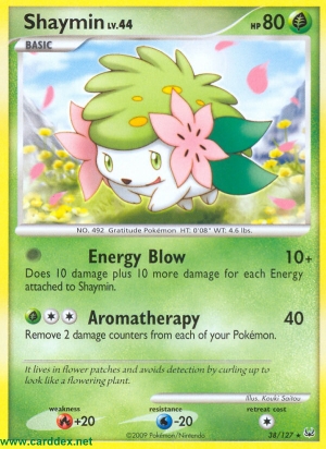Kosten: Does 10 damage plus 10 more damage for each Energy attached to Shaymin.  Schaden: