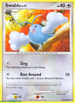 Kosten: You may switch Swablu with 1 of your Benched Pokémon.  Schaden: