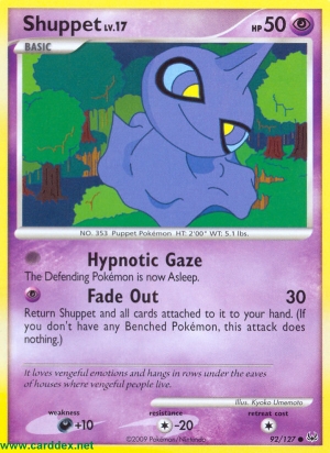Kosten: Return Shuppet and all cards attached to it to your hand. (If you don't have any Benched Pokémon, this attack does nothing.)  Schaden: