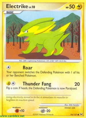 Kosten: Flip a coin. If heads, the Defending Pokémon is now Paralyzed.  Schaden: