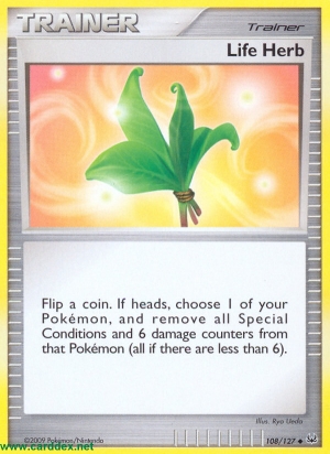 Beschreibung: Flip a coin. If heads, choose 1 of your Pokémon, and remove all Special Conditions and 6 damage counters from that Pokémon (all if there are less than 6).