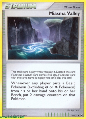 Diese Karte bleibt im Spiel, wenn du sie spielst. Lege diese Karte ab, sobald eine weitere Stadion-Karte ins Spiel kommt. Wenn sich bereits eine Karte mit diesem Namen im Spiel befindet, kannst du diese Karte nicht spielen.