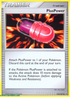 If the Pokémon PlusPower is attached to attacks, the attack does 10 more damage to the Active Pokémon (before applying Weakness and Resistance).