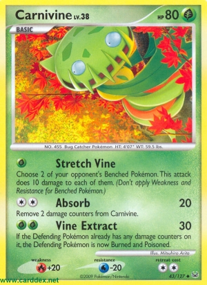 Kosten: Remove 2 damage counters from Carnivine.  Schaden: