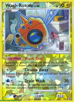 Einmal während deines Zuges (vor deinem Angriff) kannst du diese Poké-Power benutzen. Wasch-Rotoms Typ ist bis zum Ende des Zuges.