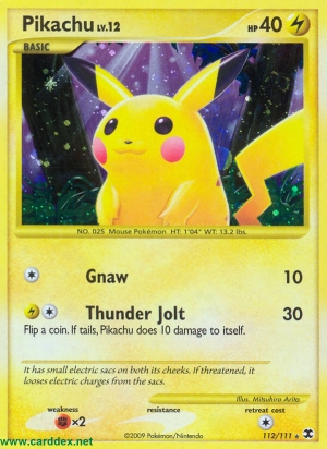 Kosten: Wirf eine Münze. Bei „Zahl“ fügt Pikachu sich selbst 10 Schadenspunkte zu.  Schaden: