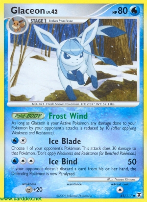 Solange Glaziola dein Aktives Pokémon ist, wird Schaden, der deinen Pokémon durch gegnerische Angriffe zugefügt wird, um 10 Schadenspunkte reduziert (nachdem Schwäche und Resistenz verrechnet wurden).