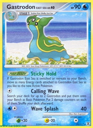 Wenn Gastrodon Östliches Meer auf die Bank zurückgezogen oder gegen ein Pokémon auf deiner Bank ausgetauscht wird, kannst du eine beliebige Anzahl an Gastrodon Östliches Meer angelegter Energiekarten entfernen und an das neue Aktive Pokémon anlegen.