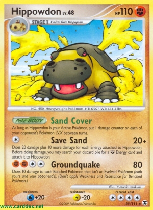 Solange Hippoterus dein Aktives Pokémon ist, lege zwischen den Zügen 1 Schadensmarke auf jedes Pokémon LV.X deines Gegners.