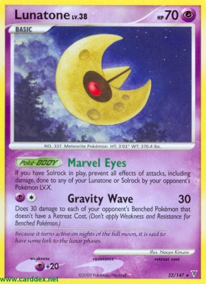 Wenn du Sonnfel im Spiel hast, verhindere alle Effekte von Angriffen, einschließlich Schaden, die deinen Lunastein und Sonnfel im Spiel von gegnerischen Pokémon LV.X zugefügt würden.