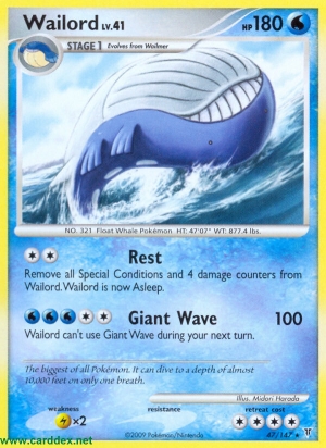 Kosten: Entferne alle Speziellen Zustände und 4 Schadensmarken von Wailord. Wailord schläft jetzt.  Schaden: